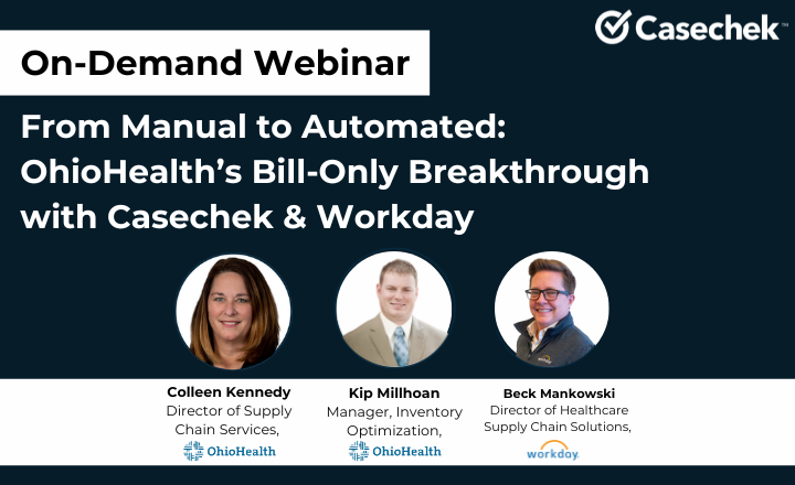 Join Colleen Kennedy and Kip Millhoan of OhioHealth as they share how automation transformed their Bill-Only processes—from the decision to integrate Casechek and Workday to key lessons in implementation and stakeholder alignment. Beck Mankowski of Workday will also provide insights into the Workday Bill-Only process and answer questions about the Workday supply chain management product. …